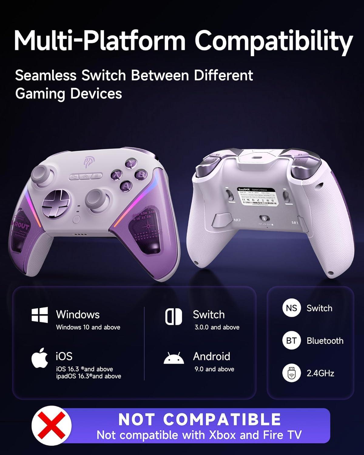 EasySMX D10 PC Controller - Elite Wireless Bluetooth Pro Controller with TMR Joystick, Dual-Mode Triggers & Full Mechanical Buttons, 1000Hz Polling Rate, RGB Lighting for PC/Switch/Android/iOS(purple)