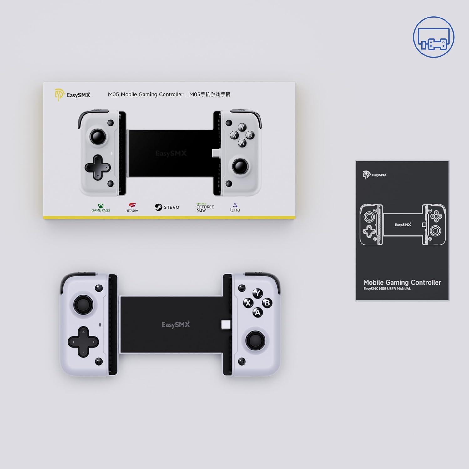 EasySMX M05 Mobile Gaming Controller for iPhone 15 Series (USB-C),Android Gaming Controller with Hall Trigger,Advanced Vibration,Plug & Play,Bluetooth (Type-C)(For USB-C๏ผˆwhite๏ผ‰)