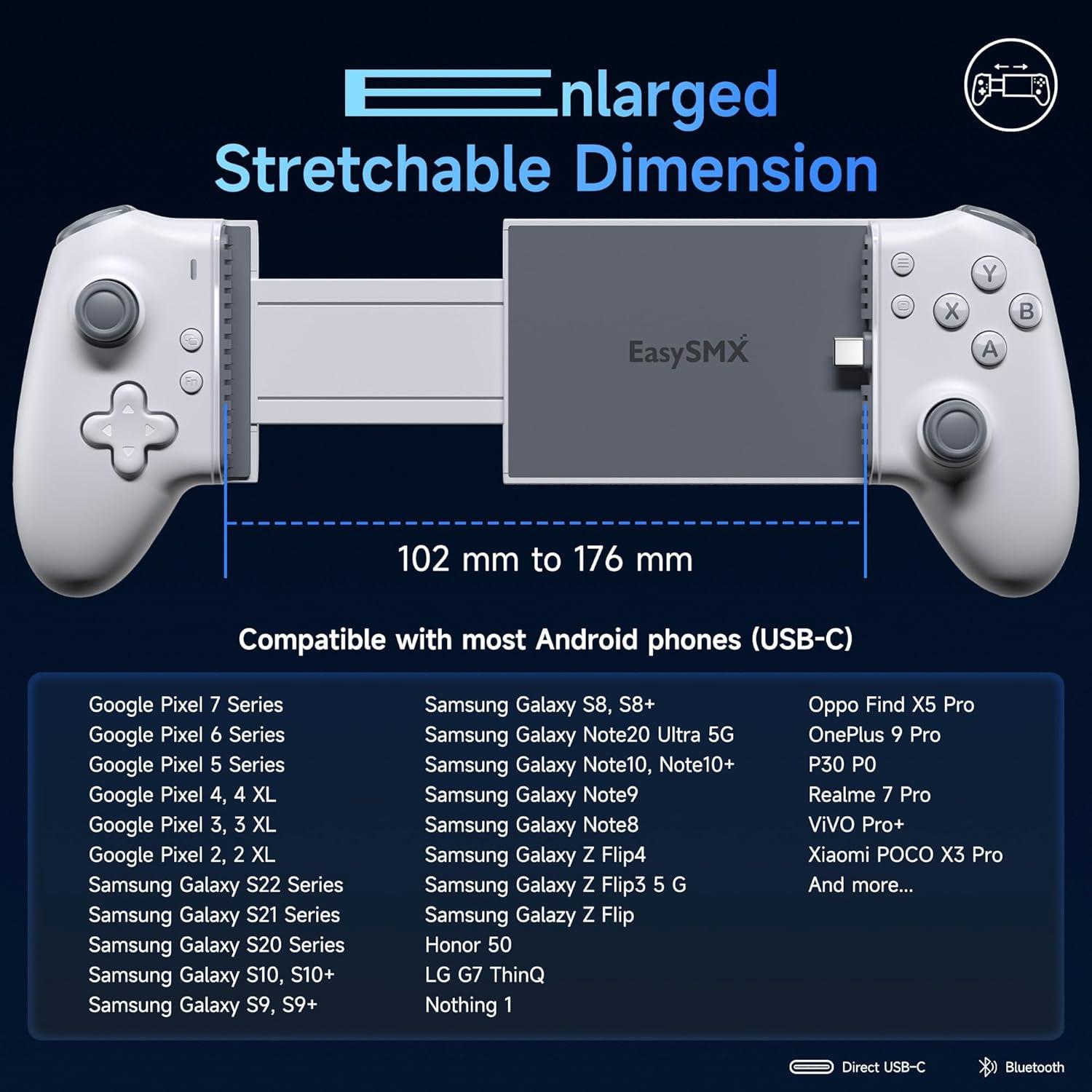 EasySMX M15 Mobile Gaming Controller for Android/iPhone 15 Series(USB-C),Android Controller with Hall Trigger/Joysticks,Phone Controller for Play Minecraft,COD(White)