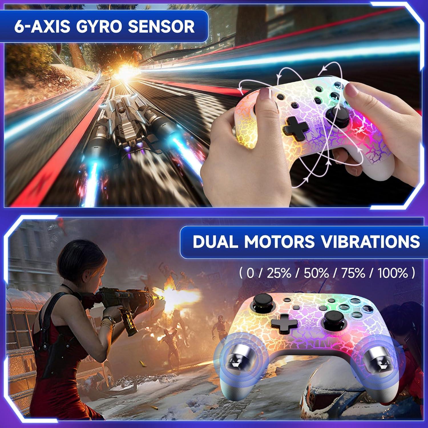 【Immersive Gaming Experience】This switch controllers has 5-level adjustable dual vibration motors that provide you excellent vibration feedback to enhance the game immersion. With the 6-axis gyro sensor, it can detect the inclination of the controller and make a quick response, giving you more fun while playing motion sensing games.