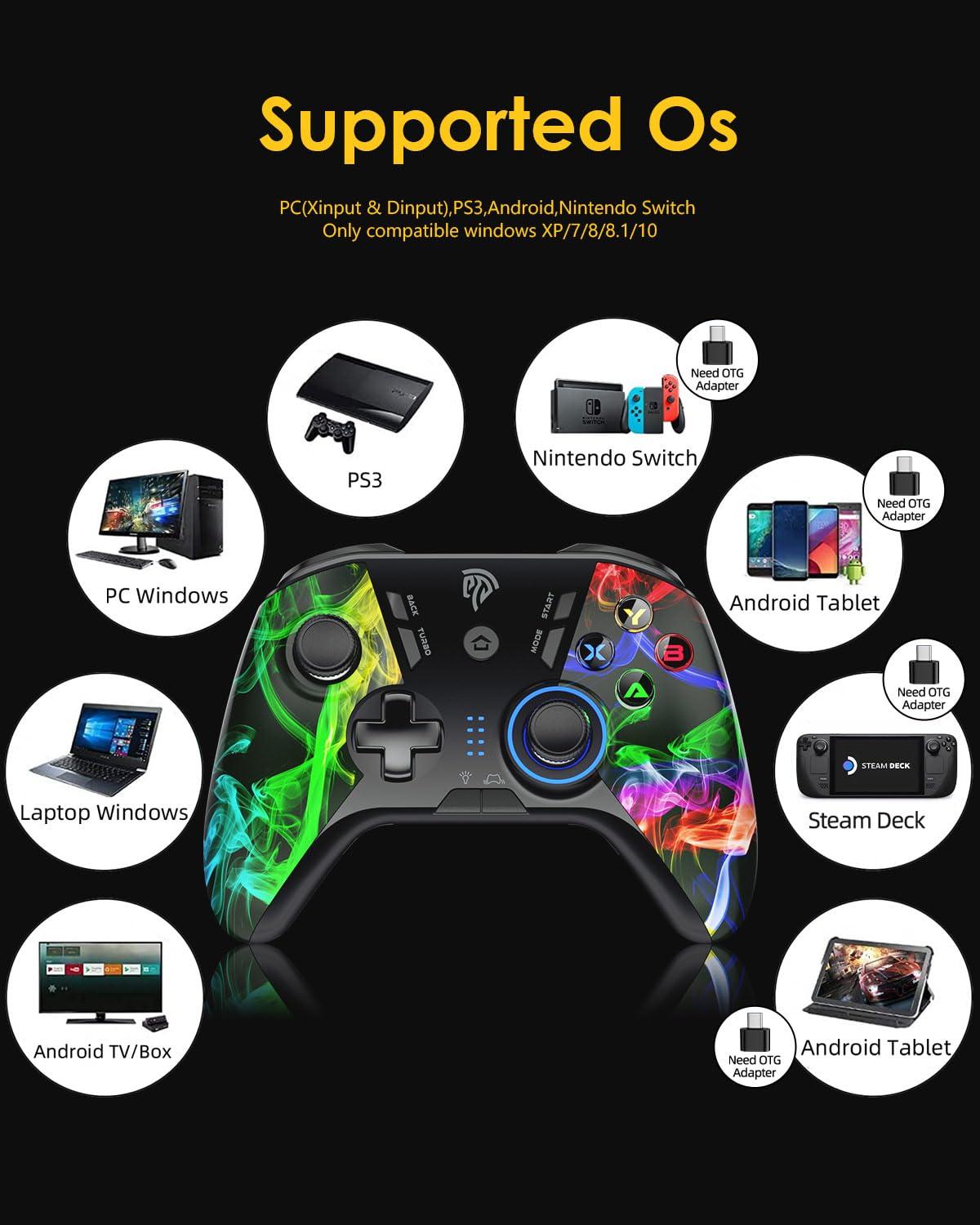 EasySMX X15 PC Controller – Enhanced Wireless Bluetooth Controller with Hall Joysticks/Hall Triggers/RGB Lighting – No Stick Drift, No Dead Zone – Work for Windows PC, Android, Steam and Switch