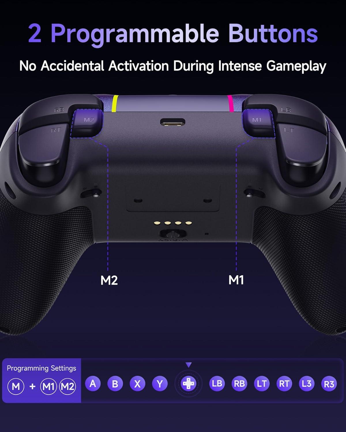 Programmable Buttons – Two extra customizable buttons placed on the top of the controller to avoid accidental touches, solving the common problem of mis-presses on back paddles.