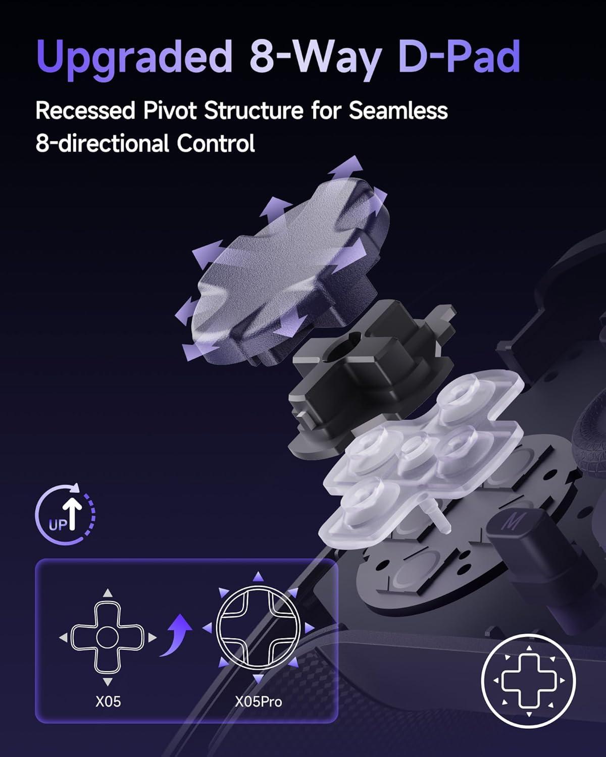 Upgraded 8-Way D-Pad – Reengineered with dome switches and a recessed pivot, supporting smooth diagonal input and precise 8-direction control. The perfect gaming controller for pc players who enjoy fighting and retro titles.