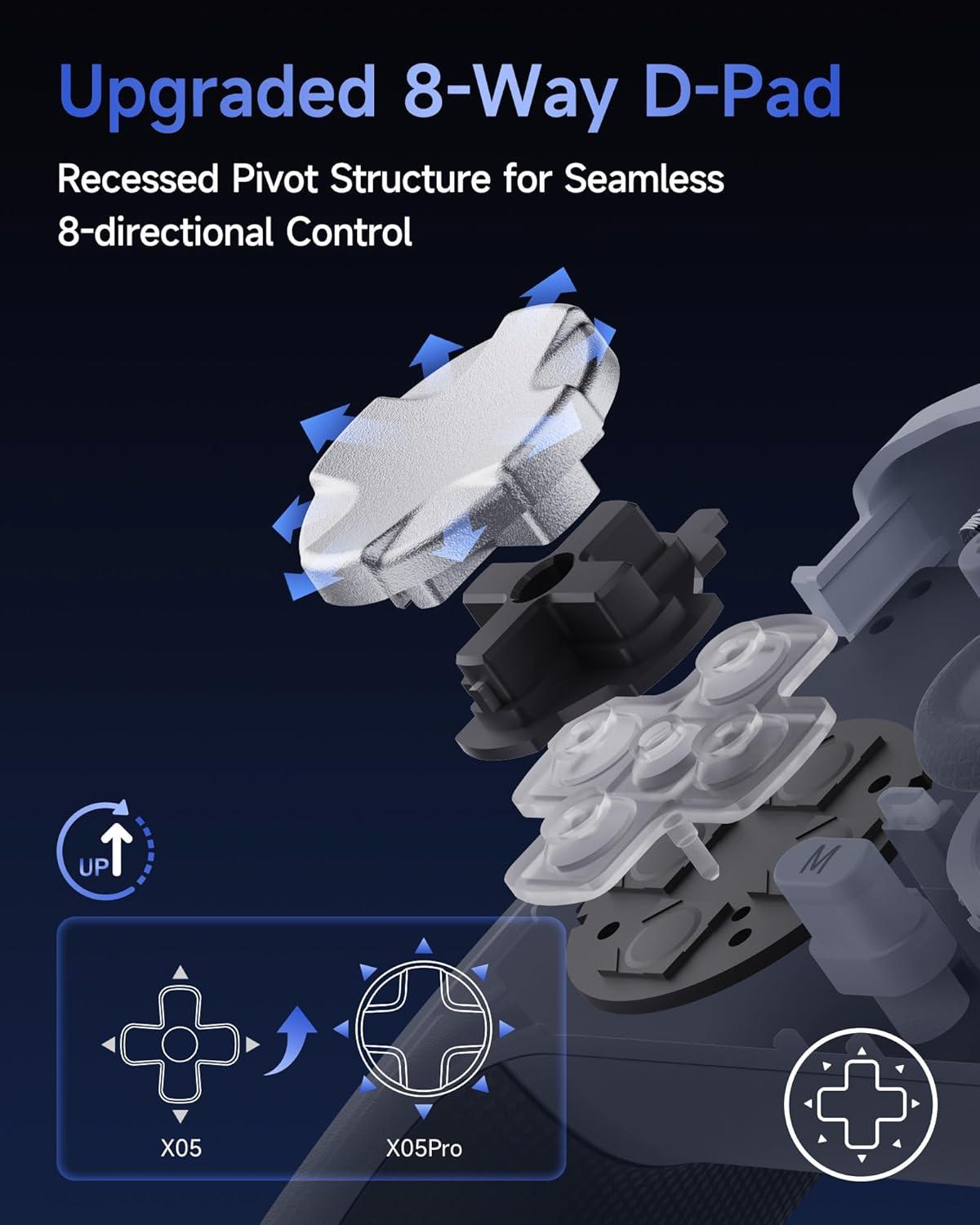 Upgraded 8-Way D-Pad – Reengineered with dome switches and a recessed pivot, supporting smooth diagonal input and precise 8-direction control. The perfect gaming controller for pc players who enjoy fighting and retro titles.