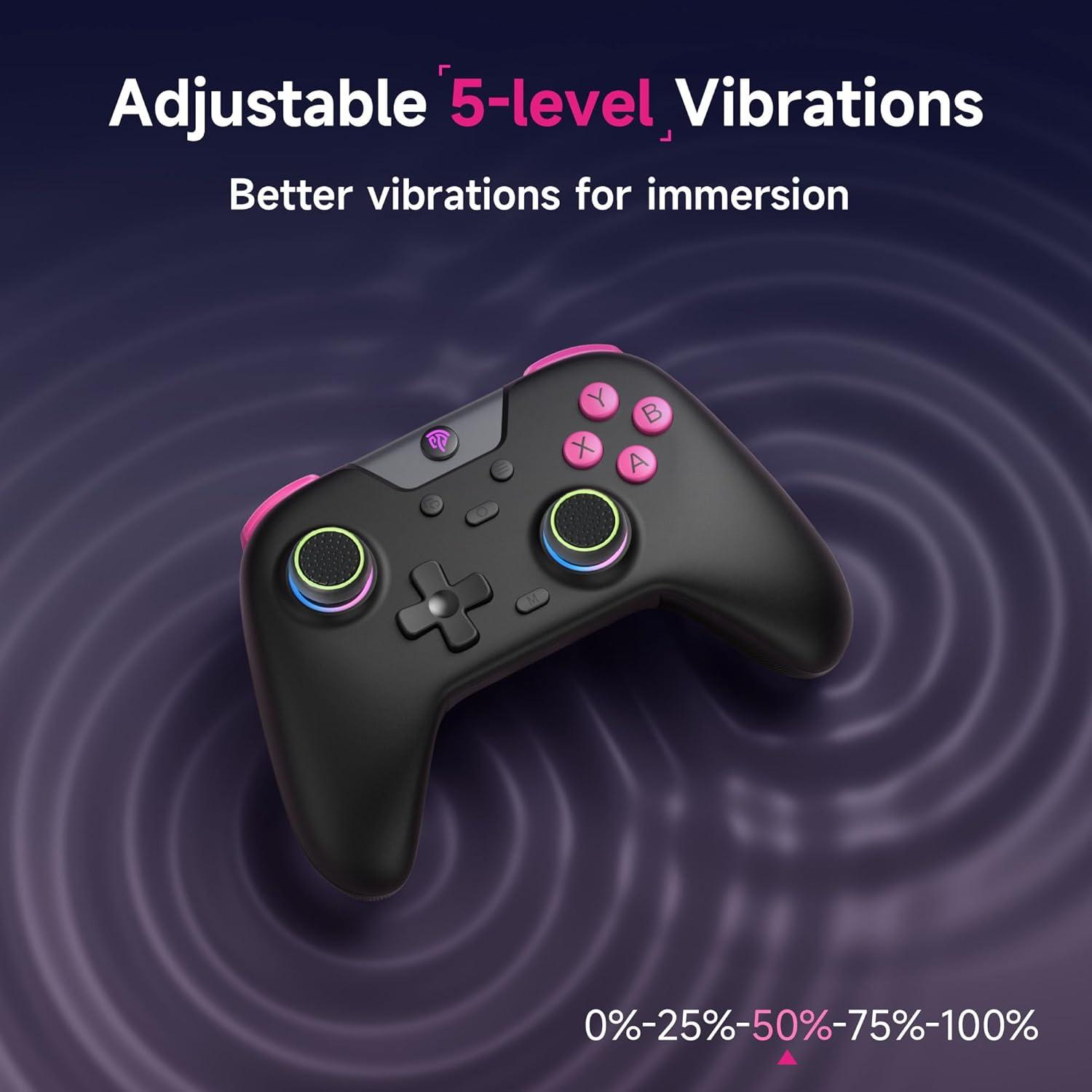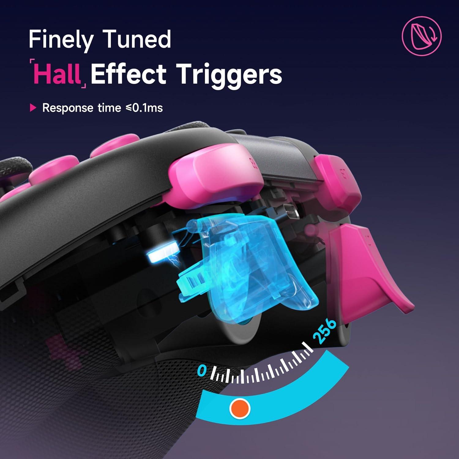 Dual-Stage Impulse Triggers – Adjustable trigger lock for long or short travel, paired with 2+2 built-in rumble motors for realistic recoil, drift, and collision feedback. Ideal for pc gaming controller users who want immersive racing or FPS experiences.