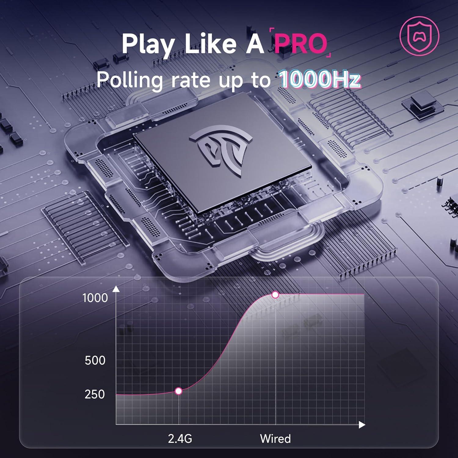 Hall Effect Joysticks + 1000Hz Polling Rate – High-precision 11-bit sensors deliver drift-free accuracy and long-lasting durability. Wired & 2.4G wireless controller pc modes support 1000Hz ultra-fast response, while bluetooth controller pc mode offers 125Hz for mobile or casual gaming.