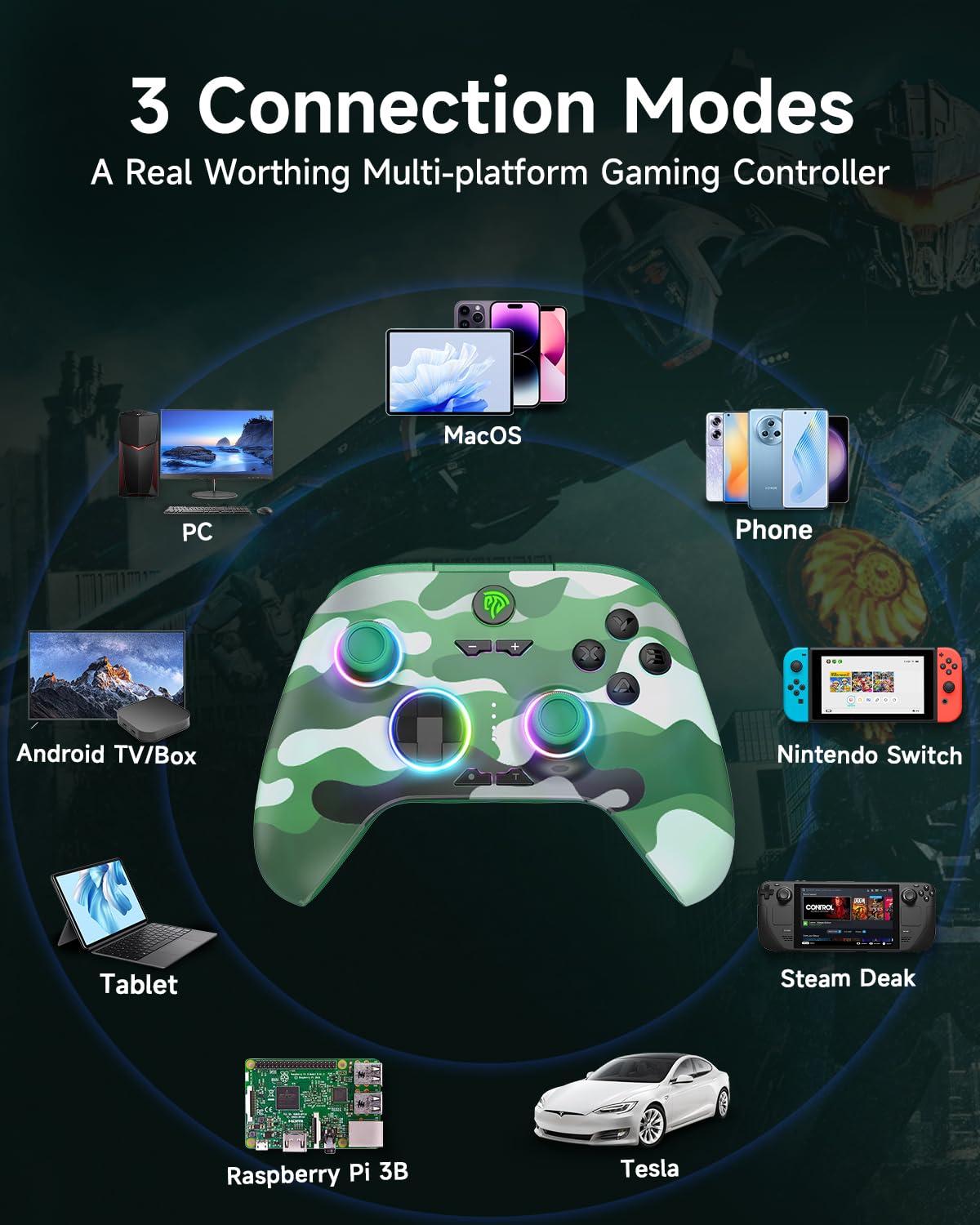 imageEasySMX X15 PC Controller  Enhanced Wireless Bluetooth Controller with Hall JoysticksHall TriggersRGB Lighting  No Stick Drift No Dead Zone  Work for Windows PC Android Steam and Switchgreen