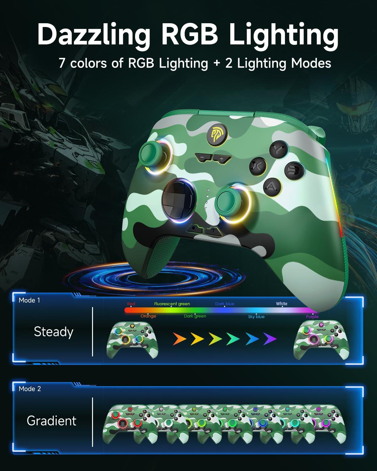 EasySMX X15 PC Controller – Enhanced Wireless Bluetooth Controller with Hall Joysticks/Hall Triggers/RGB Lighting – No Stick Drift, No Dead Zone – Work for Windows PC, Android, Steam and Switch(green)
