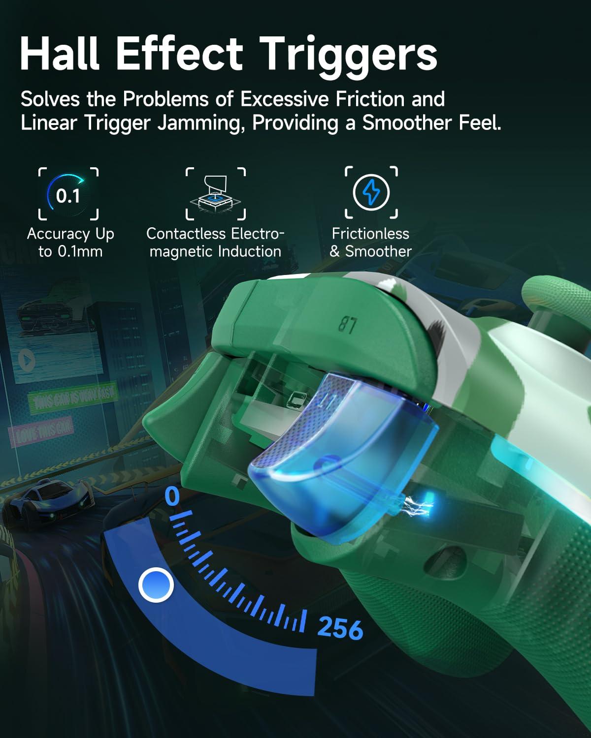 🎮【Hall Effect Joysticks and Triggers】Enjoy enhanced joystick control with our four hall effect sensors. These sensors provide precise and reliable input detection, allowing for smoother and more accurate movement in-game. Whether you're navigating through virtual worlds or aiming with precision, our hall effect technology ensures a seamless gaming experience.