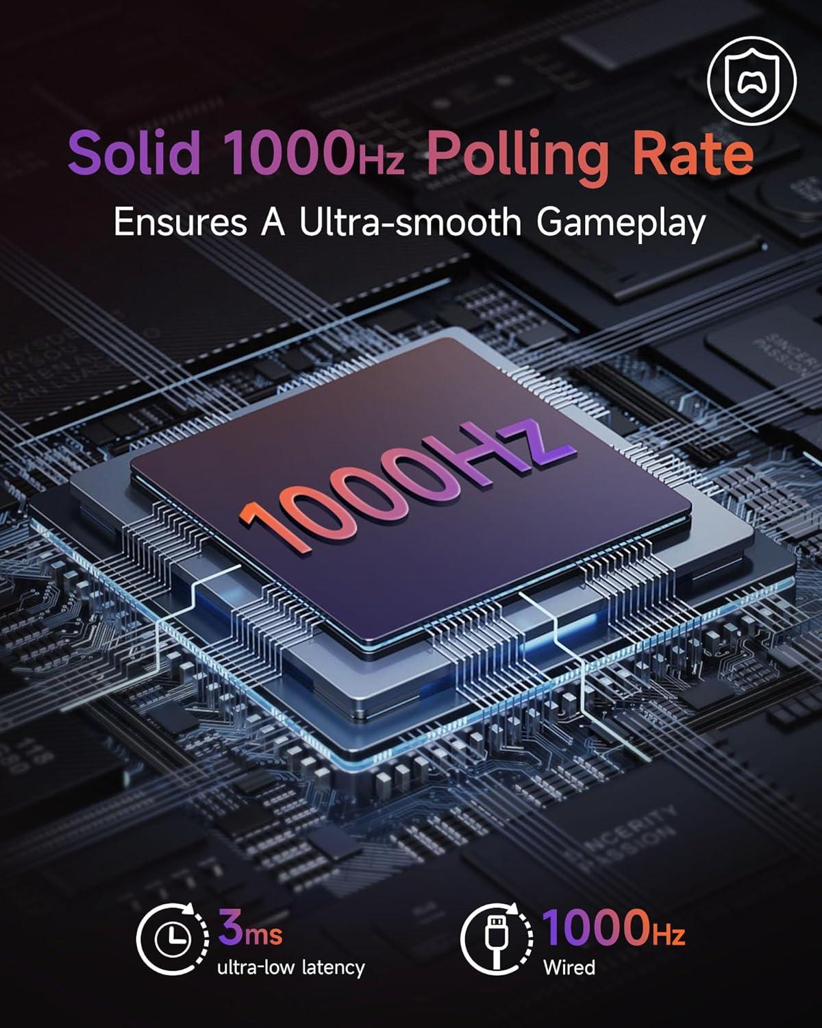 🎮1000Hz Polling Rate – Enjoy near-zero input lag with a true 1000Hz polling rate over both USB wired and 2.4G wireless connections, ensuring lightning-fast response for competitive gaming.